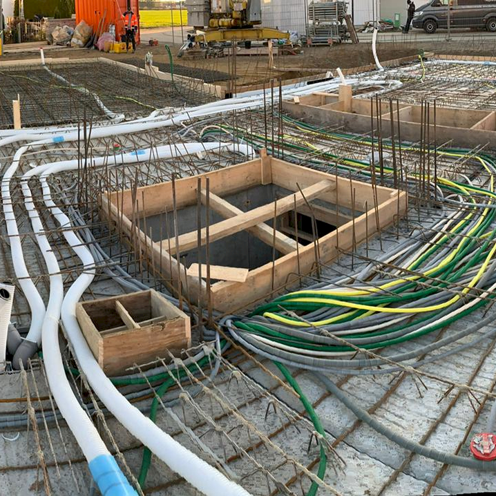 - Zentrale Lüftungssysteme mit Verlegung der Lüftungskanäle in der Betondecke, auf der Betondecke unter dem Fußbodenaufbau